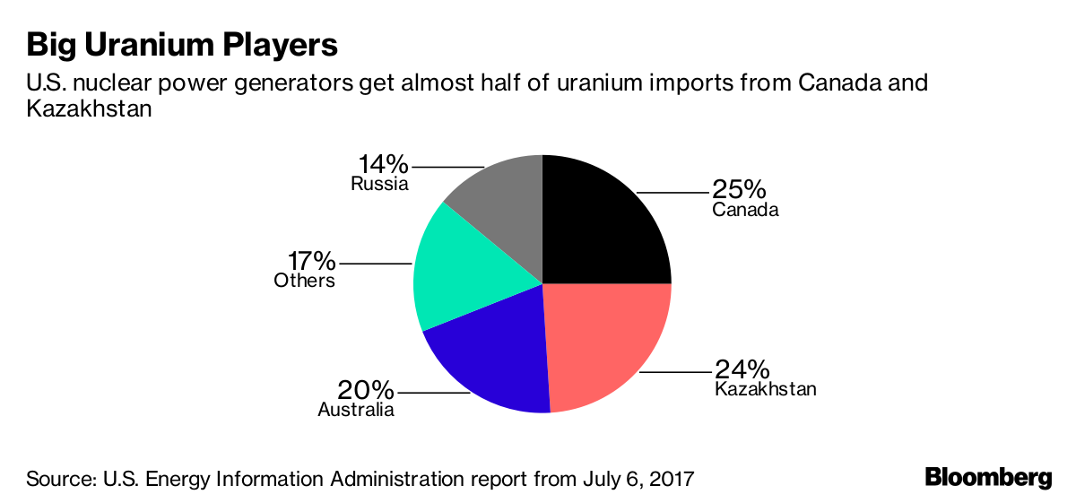 今年1月份,美國(guó)政府對(duì)進(jìn)口太陽(yáng)能組件和設(shè)備征收關(guān)稅。一個(gè)多月后,特朗普宣布對(duì)鋼鐵和鋁進(jìn)口征稅。如果他是認(rèn)真的,那么另一個(gè)潛在的貿(mào)易目標(biāo):鈾。