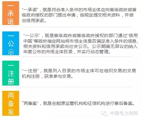 按照簡(jiǎn)政放權(quán)的原則,《實(shí)施意見》對(duì)售電側(cè)市場(chǎng)的準(zhǔn)入和退出機(jī)制作了創(chuàng)新性安排,這是新一輪電力體制改革中的一個(gè)亮點(diǎn)。準(zhǔn)入機(jī)制方面,將以注冊(cè)認(rèn)定代替行政許可的準(zhǔn)入方式,以降低行政成本,實(shí)現(xiàn)有效監(jiān)管,提升工作效率,重點(diǎn)是“一承諾、一公示、一注冊(cè)、兩備案”。