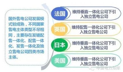 向社會(huì)資本放開售電側(cè)市場,賦予電力終端用戶以購電選擇權(quán),是國外先進(jìn)國家電力市場化改革的普遍戰(zhàn)略。但鑒于各國國情不同,其售電側(cè)引入競爭機(jī)制、實(shí)現(xiàn)市場化的路徑也不盡相同,這也就導(dǎo)致了各個(gè)國家售電側(cè)的放開模式也不同,并進(jìn)而決定了國外售電公司的基本競爭格局。