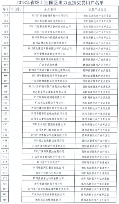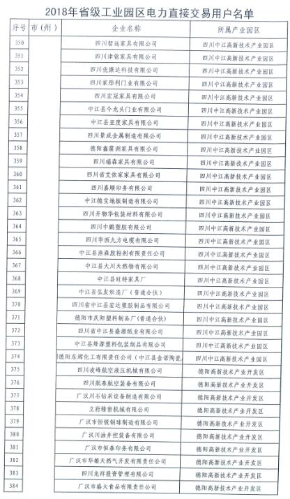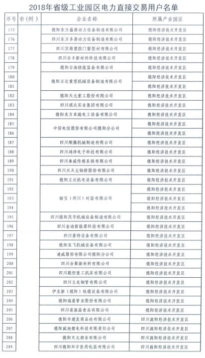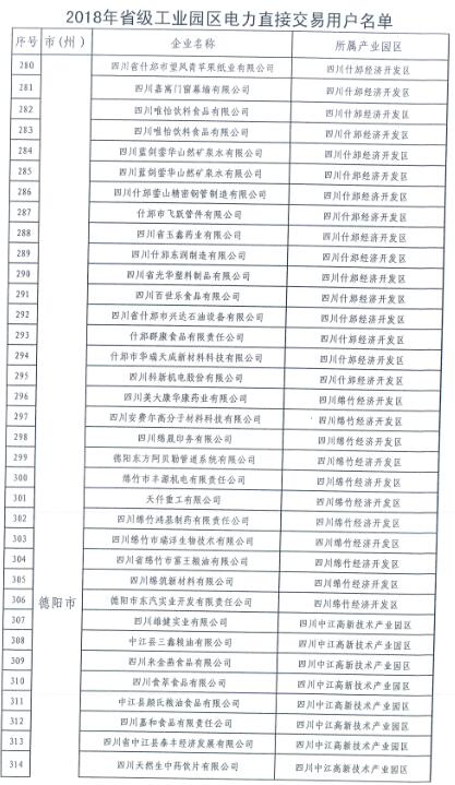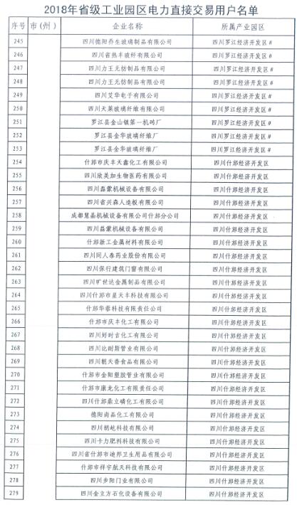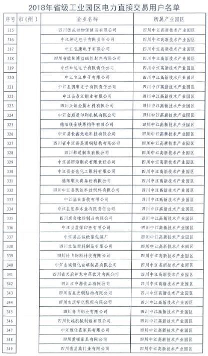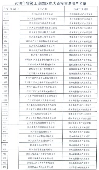 全名單|四川新增2018年省級及以上工業(yè)園區(qū)(開發(fā)區(qū))和4個重點行業(yè)電力直接交易用戶