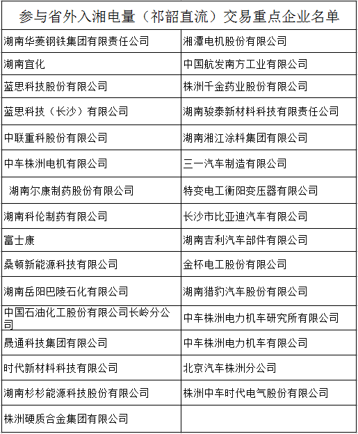 湖南優(yōu)先參與跨省跨區(qū)電量交易30家重點(diǎn)企業(yè)公示名單