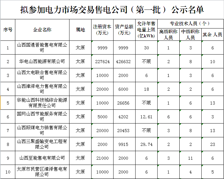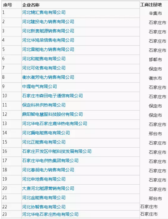 廣東粵電電力銷售有限公司、華能廣東能源銷售有限責(zé)任公司、華潤電力(廣東)銷售有限公司、中電投(深圳)電力銷售有限公司、深圳能源售電有限公司、廣州發(fā)展電力銷售有限公司、新奧(廣東)能源銷售有限公司、廣東華廈電力銷售有限公司、肇慶大旺電力熱力有限公司、廣州恒運(yùn)綜合能源銷售有限公司、深圳深電能售電公司、深圳兆能供電服務(wù)公司、廣州穗開電業(yè)有限公司