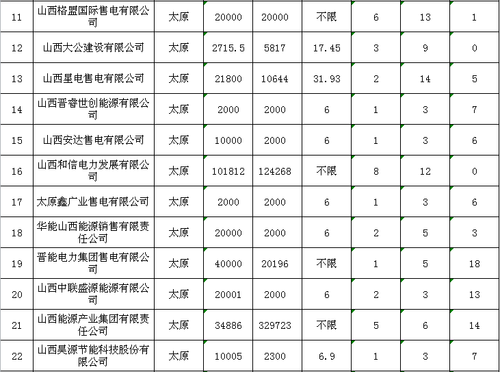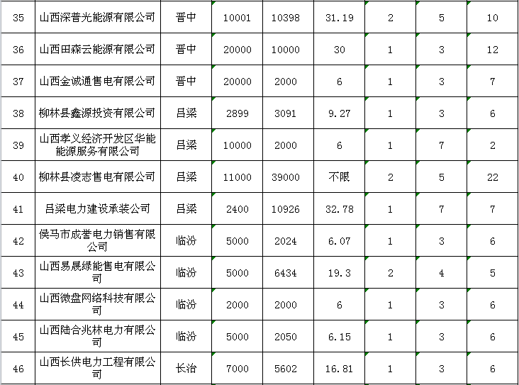 售電公司北京26家:甘肅39家:甘肅錦泰電力有限責(zé)任公司甘肅電投售電有限公司甘肅宏祥能源服務(wù)有限公司甘肅中能源電力開發(fā)有限責(zé)任公司國家電投集團(tuán)甘肅售電有限公司國投甘肅售電有限公司白銀協(xié)鑫能源服務(wù)有限公