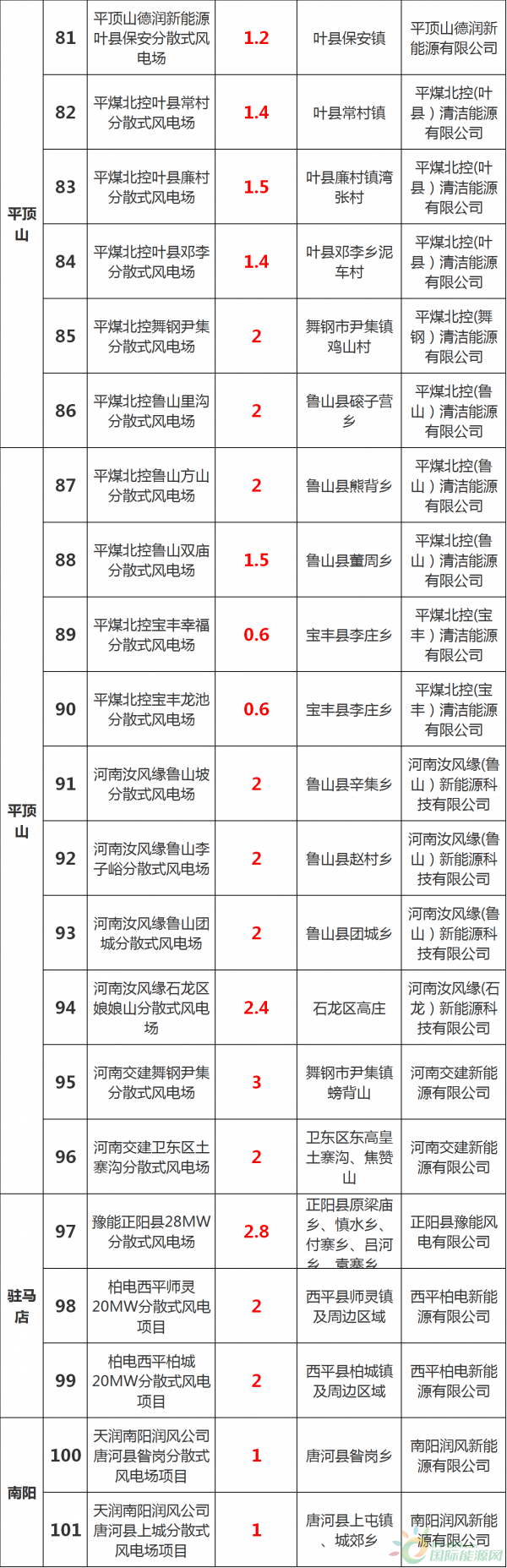 今天(12月6日),河南省發(fā)改委不發(fā)了《關(guān)于下達河南省十三五分散式風(fēng)電開發(fā)方案的通知》以及河南省十三五分散式風(fēng)電開發(fā)方案項目表。124個風(fēng)電項目,共計規(guī)模210 7萬千瓦!濮陽、洛陽、平頂山、永城是規(guī)劃項目