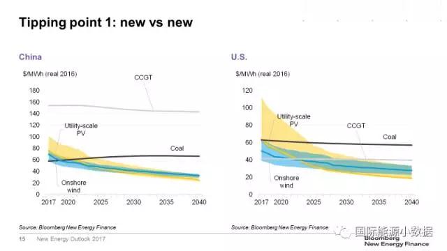 風(fēng)電、光伏能否最終取代煤電、天然氣發(fā)電取決于兩個(gè)關(guān)鍵節(jié)點(diǎn),或者說臨界點(diǎn):1)New vs New(新對(duì)新)第一個(gè)臨界點(diǎn)是:在沒有補(bǔ)貼的情況下,新建風(fēng)電、光伏電站發(fā)電成本可與新建煤電、天然氣電站競(jìng)爭(zhēng)。在目前的市