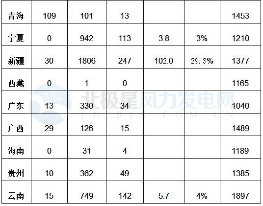 備注:1、棄風電量和棄風率為電網(wǎng)公司調(diào)度口徑,其它數(shù)據(jù)來自中電聯(lián); 2、陜西數(shù)據(jù)不含陜西地方電力公司相關數(shù)據(jù)