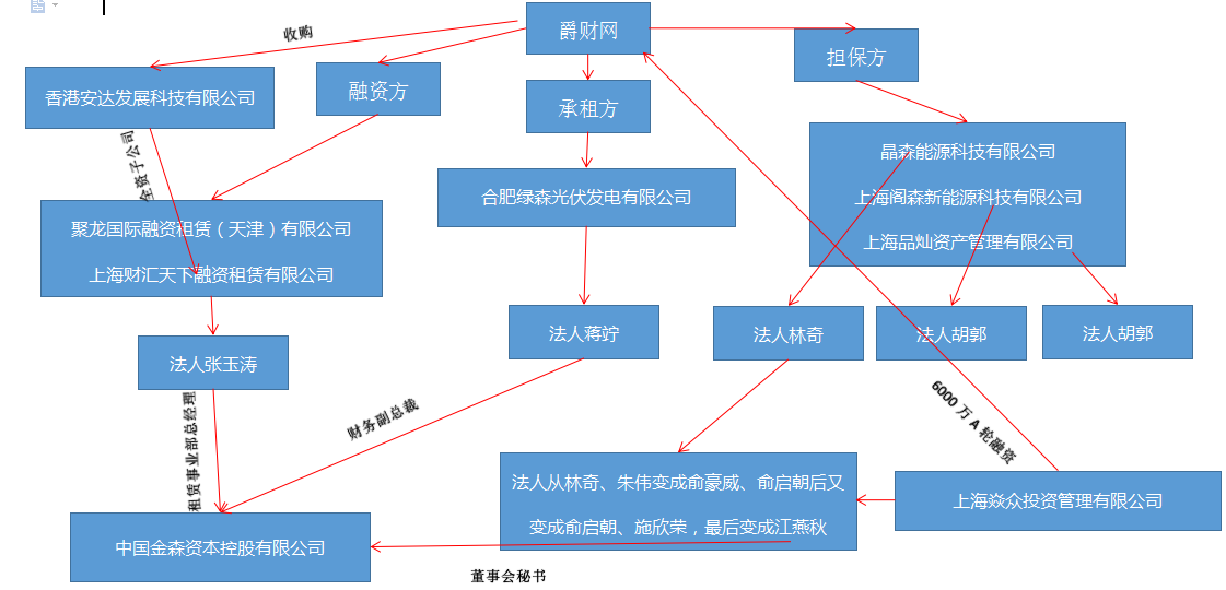 其中晶森能源官網上有一則新聞很有意思,其中稱,上面提過的蔣竚、張玉濤的職位分別是中國金森資本控股有限公司財務副總裁、融資租賃事業(yè)部總經理,江燕秋為董事會秘書,而金森資本是于2016年5月注冊于香港的金融投資公司。
