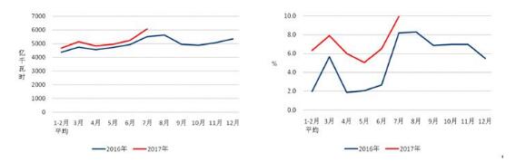 一、全社會用電量增速同比提高,7月當(dāng)月用電量創(chuàng)歷史新高
