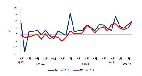 圖22015年以來分月輕、重工業(yè)用電量增速情況