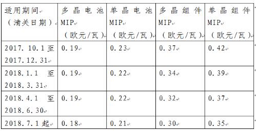 當?shù)貢r間9月16日,歐委會發(fā)布了對我光伏雙反措施形式臨時復(fù)審裁決結(jié)果。根據(jù)該公告,現(xiàn)行價格承諾機制將被新的最低限價(MinimumImportPrice,MIP)機制取代。新MIP及調(diào)價方案如下:公告同時公布了可以享受新MIP的