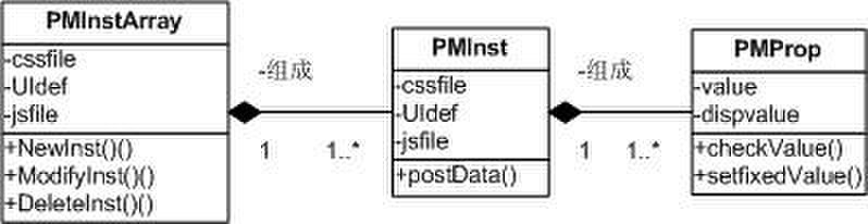 數(shù)據(jù)表現(xiàn)層的HTC組件包括:PMInstArray類,PMInst類,及PMProp類。類圖定義如圖2: