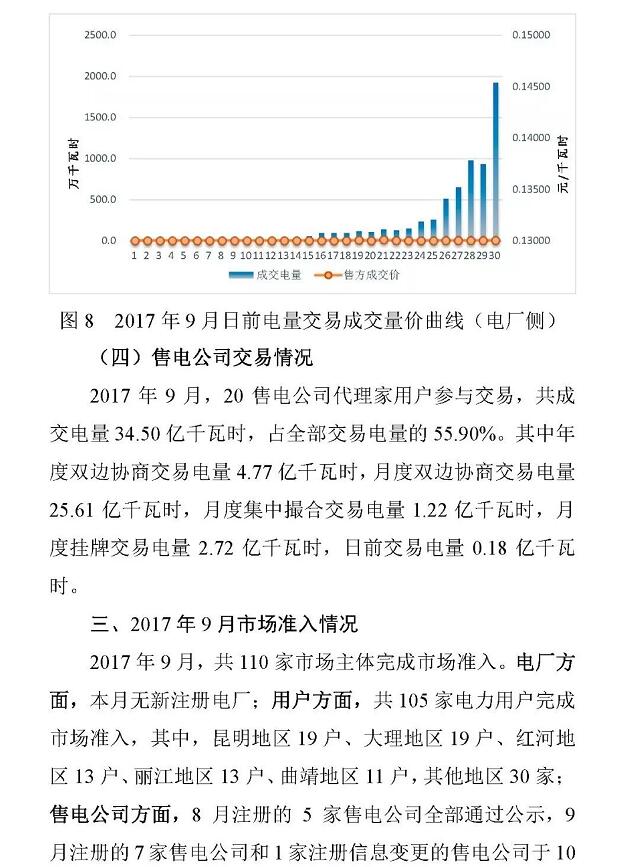 【數(shù)據(jù)】2017年9月云南電力市場(chǎng)化交易分析