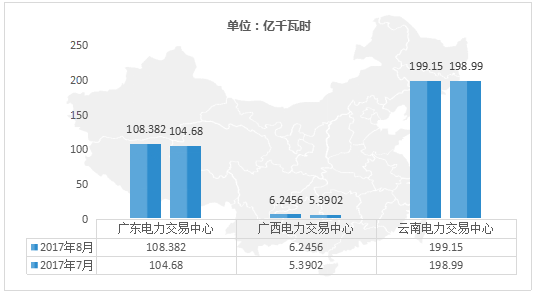 數(shù)據(jù)顯示,八月份,廣東、廣西、云南、貴州四大省級電力交易中心的市場交易電量普遍增長,其中廣東市場交易電量108.382億千瓦時,同比增長3.53%,其中集中競價200.56億千瓦時,雙邊協(xié)商827.17億千瓦時;廣西交易規(guī)模6.2456億千瓦時,成交電量5.8361億千瓦時,同比增長15.87%;云南市場總需求折算到電廠上網(wǎng)側(cè)預計為199.15億千瓦時,同比增加8.06%。