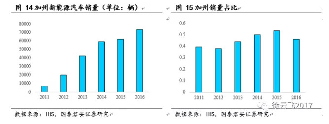 加州實(shí)行積分制政策有效培育了一批致力于研發(fā)新能源汽車的企業(yè),刺激傳統(tǒng)車企研發(fā)銷售新能源汽車。各大車企的積極加入使得整個(gè)市場(chǎng)形成良性競爭,新能源汽車銷量全美一枝獨(dú)秀,也吸引其他州開始實(shí)施積分政策。