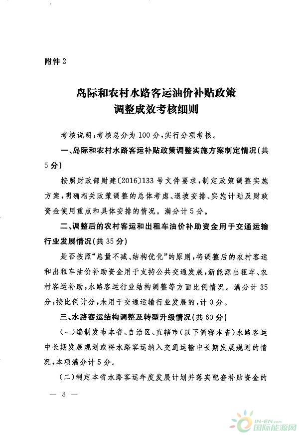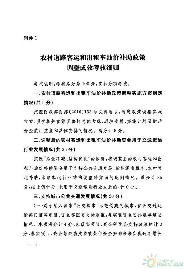 考核內(nèi)容包括農(nóng)村客運(yùn)、出租車油價(jià)補(bǔ)助政策調(diào)整實(shí)施方案制定情況,調(diào)整后的農(nóng)村客運(yùn)和出租車油價(jià)補(bǔ)助資金支持公共交通發(fā)展、新能源汽車推廣應(yīng)用及補(bǔ)助、農(nóng)村客運(yùn)發(fā)展和水路客運(yùn)行業(yè)結(jié)構(gòu)調(diào)整等情況。