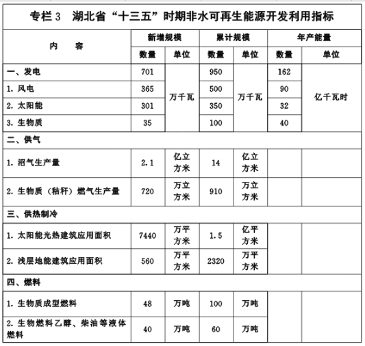 ——風(fēng)電。堅(jiān)持集中開(kāi)發(fā)與分散開(kāi)發(fā)相結(jié)合,加快推進(jìn)資源較為豐富、消納條件較好的隨州、孝感、恩施、襄陽(yáng)等地實(shí)現(xiàn)風(fēng)電規(guī)?;懈咝ч_(kāi)發(fā)利用,推動(dòng)風(fēng)能資源適宜、靠近負(fù)荷中心的分散式風(fēng)電項(xiàng)目建設(shè)。到2020年,新增風(fēng)電裝機(jī)容量365萬(wàn)千瓦,累計(jì)達(dá)到500萬(wàn)千瓦。