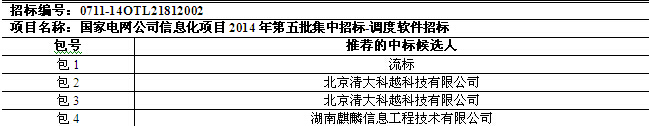 國家電網(wǎng)信息化項(xiàng)目2014年第五批(調(diào)度集成及軟件)中標(biāo)候選人公示