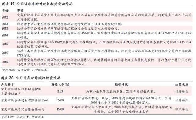 自2012年以來,公司不斷通過吸收合并控股子公司和轉(zhuǎn)讓參股公司股權(quán)等方式精簡對外股權(quán)投資的結(jié)構(gòu),剝離經(jīng)營不善的資產(chǎn)和業(yè)務(wù)。其中包括吸收合并控股子公司光華科技、耀涪投資、明宇送變電以及水江發(fā)電,同時(shí)對外轉(zhuǎn)讓公司所持有的東海證券、華源電力、銀科擔(dān)保(未完成)以及新嘉南公司(未完成)的股份。