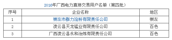 廣西關(guān)于2016年電力直接交易準入名單(第四批)的公示