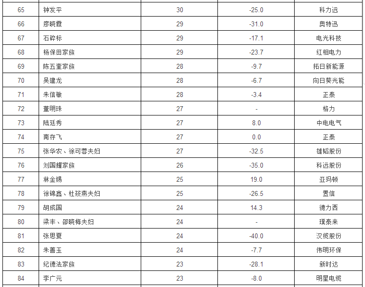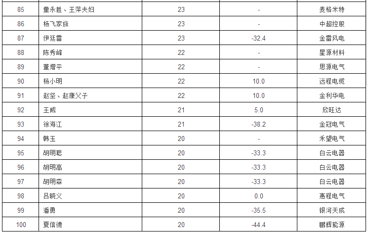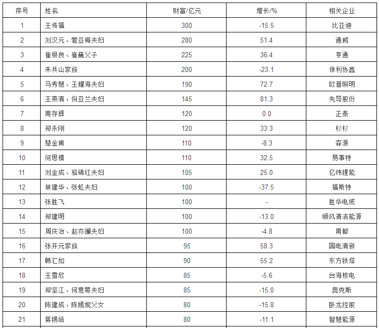 中國(guó)電能富豪100強(qiáng)擁財(cái)5785億元 12位新晉56位財(cái)富下滑