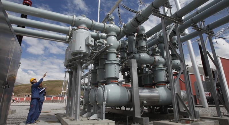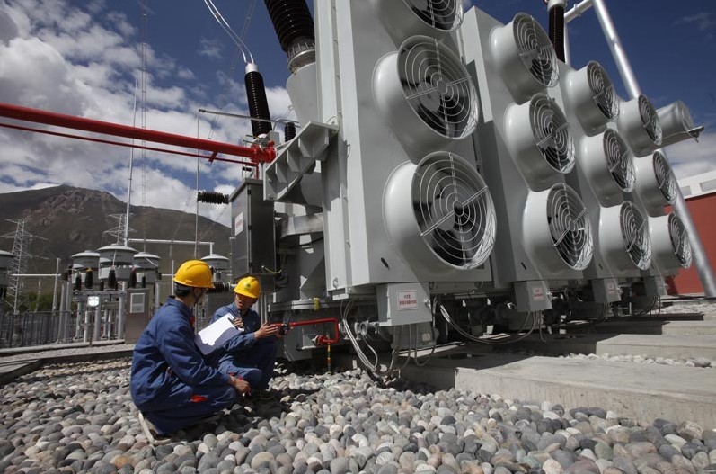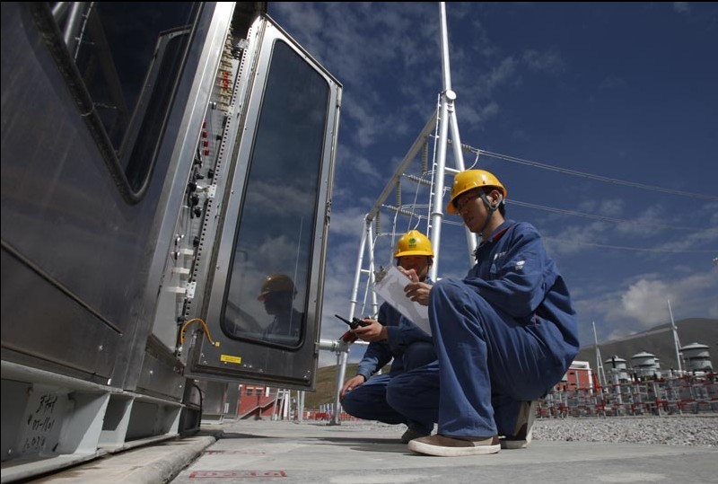 國網(wǎng)青海省電力公司檢修公司員工在玉樹330KV變電站110KV設(shè)備區(qū)進(jìn)行投運(yùn)前的巡視工作。
