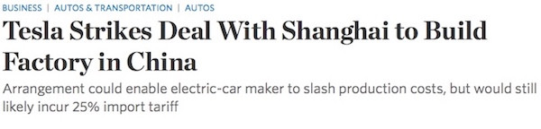 華爾街日?qǐng)?bào):特斯拉與上海政府就中國(guó)獨(dú)資建廠達(dá)成協(xié)議