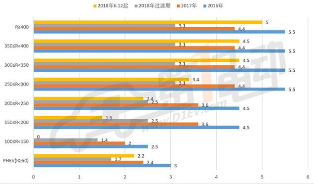 新能源乘用車過渡期補貼對比一覽(單位:萬元)
