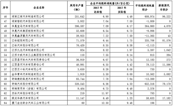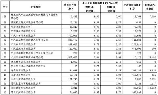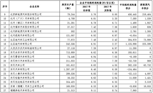 2017年度乘用車企業(yè)平均燃料消耗量與新能源汽車積分情況