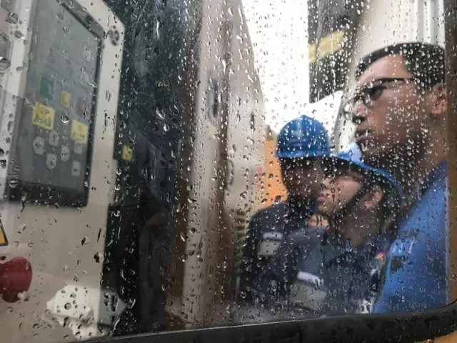 ▲8月28日,南方電網(wǎng)技術(shù)人員在風(fēng)雨中與澳門(mén)交通事務(wù)局工作人員進(jìn)行對(duì)接,讓他們盡快熟悉發(fā)電機(jī)的使用方法。林丹丹 攝