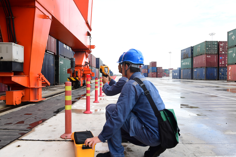 南方電網(wǎng)廣西電網(wǎng)公司工作人員給廣西欽州祥龍物流園的用電設(shè)備進(jìn)行測(cè)溫。