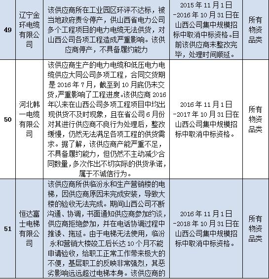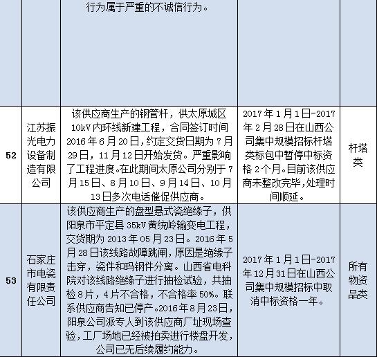 國網(山西)供應商不良行為處理情況的通報(2017.9)