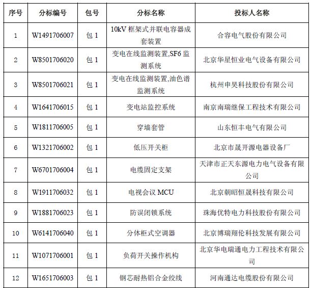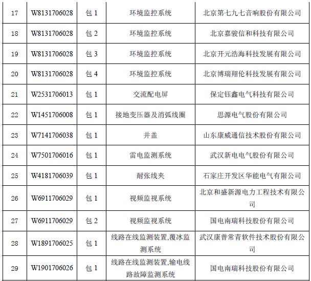 國網(wǎng)北京市電力公司2017 年第六批物資招標(biāo)采購中標(biāo)人名單(招標(biāo)編號(hào):W1491706007 等)