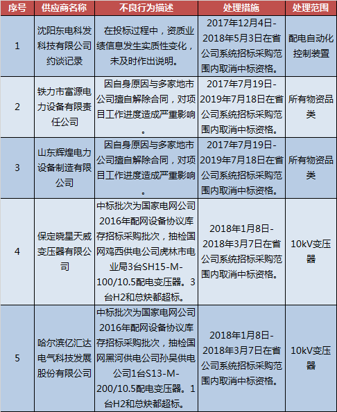 國網(wǎng)(黑龍江)通報的供應(yīng)商不良行為處理情況(2018.1)